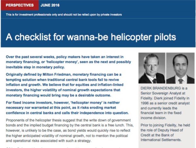 Helicopter money? Make sure you read our checklist before taking off. Our latest paper available online on the Fidelity website. Enjoy!