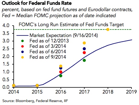 This week’s FOMC meeting got quite a few observers worried that the market might be pricing in too benign a path for US rates when compared to the median forecasts for Fed Funds issued by the Committee for the next two years.